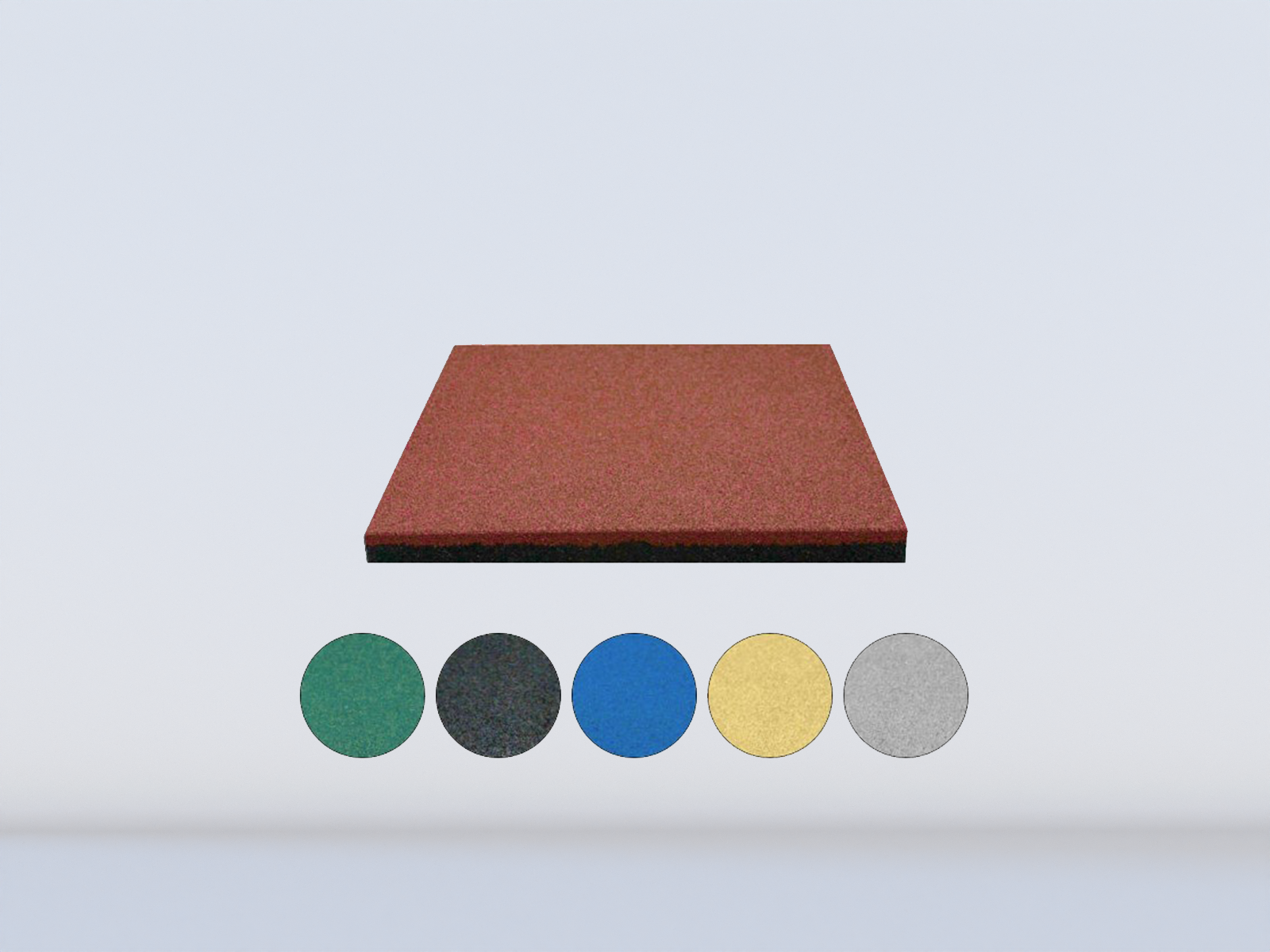 Резиновая плитка - это покрытие из резиновой крошки. Верхний слой плитки сформирован из мелкой резиновой крошки, окрашенной пигментом и отличается повышенной прочностью. Нижний слой черного цвета состоит из прессованной крупной резиновой крошки. Толщина покрытия от 15 до 40 мм, размер плит 500х500 мм. Плитка производится по технологии холодного прессования.